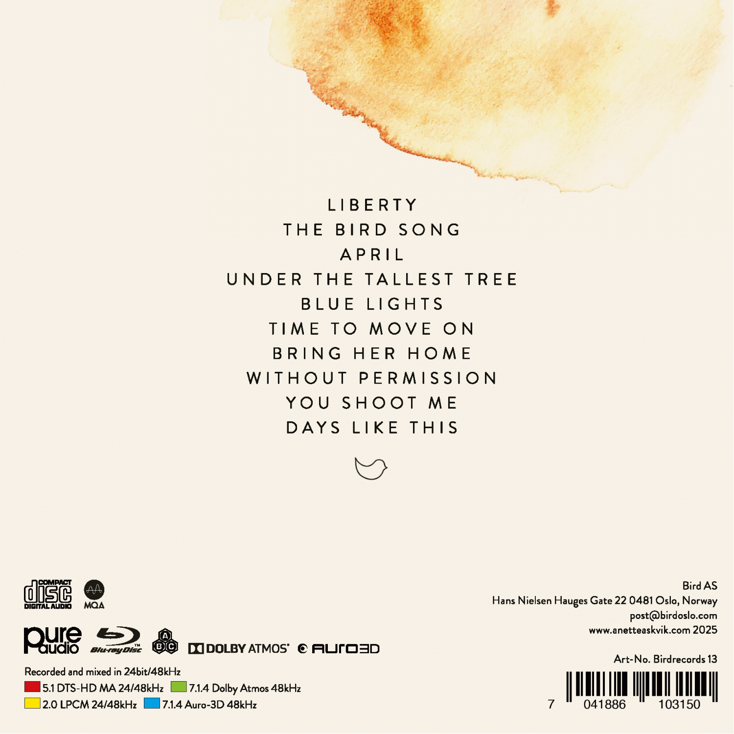 With her debut album Liberty, Norwegian artist Anette Askvik delivers a mesmerizing fusion of ambient, acoustic, and cinematic sound. Self-produced and released on her own Bird Records, the album embodies artistic freedom and sonic purity – a benchmark for independent, high-fidelity recording.